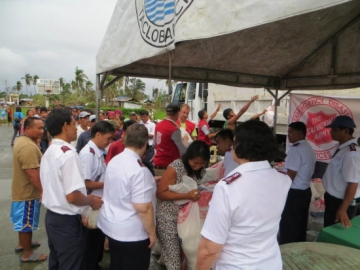 지난해 11월 슈퍼 태풍 ‘하이옌’이 강타한 중부 레이테주 타클로반은 그야말로 참혹 그 자체였다. 전 세계 구호의 손길이 이어졌고 전 세계 126개국에서 선교활동을 하는 구세군 또한 신속하게 재난 구호를 시작했다. 구세군은 국제 긴급구호팀을 꾸려 모금을 시작하였으며 긴급 구호 식량과 생수, 그리고 다양한 구호 물품 등을 현지에 전달했다. 구세군 국제 긴급구호팀은 현장에 긴급구호활동 본부를 설치하고 의료지원, 구호물품지원, 교육지원, 시설지원 등 태풍이 지나간 이후 지금까지 계속해서 활발한 지원 활동을 펼치고 있다.